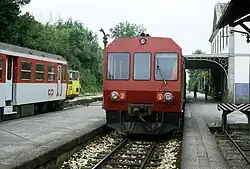 In the 1990s, the Cabinet of the Nó Ferroviário of Porto started a requalification program of the rails located around the city of Porto, that were, at that time, outdated and didn't keep up with demand, including the Guimarães line. This program had the objective of improving de working conditions, by improving infrastructure and getting new trains. The Guimarães line,was improved by improving the electrification and altering the track gauge, remodeling many stations, and installing electronic signals, the line resumed operations in 2004.[17]