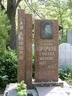 Monument dedicated to Bessarabian communists Haia Lifșiț (on the left) and Tamara Kruchok at the Jewish cemetery in Tighina