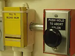 Flooding systems may be manually operated or automatically triggered by a VESDA or other automatic detection system. In the latter case, a warning siren and strobe lamp will first be activated for a few seconds to warn personnel to evacuate the area. The rapid discharge of halon and consequent rapid cooling fills the air with fog, and is accompanied by a loud, disorienting noise.