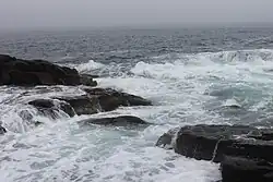 High tide near Thunder Hole in Acadia National Park; Hancock County, Maine, is a major tourist destination in the United States.