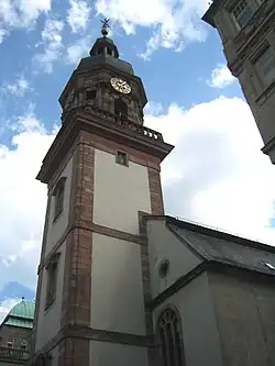 The Hauptstrasse (German: Hauptstraße, "Main Street") is the central street of Heidelberg's old town, the Altstadt, running the full length of the quarter. Today, it is a pedestrianised zone and popular shopping street. Numerous landmarks are located along its course, including the Town Hall, the Church of the Holy Spirit, and the Church of Providence.