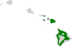 It is found on the Big Island, Maui, and Molokaʻi in Hawaii.[6] It formerly occurred on Lānaʻi where it was last seen in 1976.[6] It is one of the most common honeycreepers, inhabiting all types of habitat, dry māmane forests to mesic and wet forests, on the islands at elevations from sea level to 8,000 feet (2,400 m). On Maui they have also been successful in forests of introduced pines, cypresses and firs. Of all the forest birds native to Hawaii, the Hawaiʻi ʻamakihi has been affected the least by habitat changes. It is suspected that it is evolving resistance to diseases such as avian malaria. Along with the ʻApapane, it is one of the two Hawaiian honeycreepers listed by the IUCN as being of least concern.
