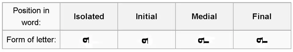 | Nastaʿlīq glyph form: | ہ | ــــہ | ــــہــــ | ہــــ |