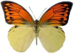 Hebomoia leucippe is a butterfly in the family Pieridae. It is endemic to the Moluccas and Peleng in Indonesia. The wingspan of H. leucippe is approximately 8 cm (3.1 in).