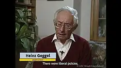 - ^ "Holocaust survivor, Heinz Geggel". USC Shoah Foundation. University of Southern California. Retrieved 2023-12-26.