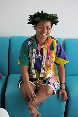 She was then one of the first five Paralympic athletes to a Solomon Islands team at a Pacific Games in 2015.[6] In addition to athletics, she also competed in the seated table tennis. She lost in straight sets to Roden Merewalesi of Fiji in her first game, and then Papua New Guinea's Vero Paul Nime by three games to two in her second match. As a result, she finished third overall out of the three competitors in the class, winning the bronze medal.[7]