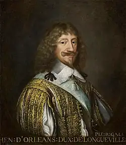 Henri II d'Orléans, duc de Longueville or Henri de Valois-Longueville (6 April 1595 – 11 May 1663), a legitimated prince of France (of royal descent) and peer of France, served as governor of Picardy, then of Normandy, and was a major figure during the Fronde.[a]
