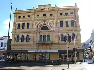 Designed by Adelaide-born architects David Williams and Charles Thomas Good, the foundation stone for the Princess Theatre was laid on 14 October 1912. However, after it was built in 1913, it opened as the New Tivoli Theatre,[1] part of national Tivoli vaudeville circuit,[2][3] and is the only original Tivoli still standing. The opening ceremony was presided over by Mayor John Lavington Bonython on 5 September 1913.[1]