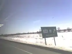 Highway 34 is short highway which today serves to connect the town of Hawkesbury with Highway 417. The 16.9-kilometre (11 mi) route ends at Main Street, near the Ottawa River in downtown Hawkesbury. Between these two points, with the exception of the town of Vankleek Hill, the highway traverses the rural Ottawa Valley, remaining straight in a southwest–northeast orientation except through Hawkesbury.[3] The majority of the land use surrounding the highway is composed of commercial shops in urban areas and agricultural in rural areas, though some small woodlots exist alongside the route. Two interchanges exist along the route: at the southern terminus with Highway 417 and with Prescott and Russell County Road 17 (former Highway 17).[4]