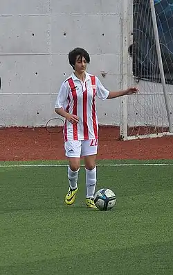 Hilal Çetinkaya obtained her license on March 26, 2010. Since the 2012–13 season, she is part of Ataşehir Belediyespor playing in the Turkeish Women's First League.[1] She was also member of the youth team of her club, which play in the Turkish Girls' Football Championship.[2][4]