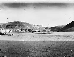An Ottoman fort in Saudi Arabia, adjacent to Bedouin encampments, 1907.
