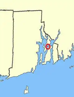Hog Island is an American island in Narragansett Bay in Rhode Island. It lies at the entrance to the harbor of Bristol and is part of the town of Portsmouth. The 60 ft (18 m) tall Hog Island Shoal Lighthouse stands off the south end, warning ships of the dangerous shoals around the island. It has a land area of approximately 0.3 sq mi (78 ha; 190 acres), making it the fifth-largest island in Narragansett Bay. It is home to a small summer vacation colony, with no regular year-round residents, and there are approximately 100 homes on it.
