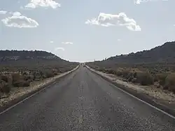 The site of Home of Truth lies approximately 15 miles (24 km) north of Monticello, and some 3 miles (4.8 km) west of Church Rock. The settlement was spread out along Dry Valley, bounded on the north and south by irregular mountain ridges that come close together at the western end, in a place called Photograph Gap. In the image to the left, the "Inner Portal" is on the horizon just to the right of the road.
