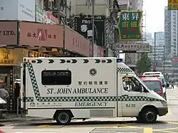 Hong Kong St. John Ambulance (Chinese: 香港聖約翰救護機構; Jyutping: hoeng1 gong2 sing3 joek3 hong3 gau3 wu6 gei3 kau3; Cantonese Yale: heūng góng sing yeuk hong kau wuh geī kau) is a charitable organisation with a long history stretching back over a century and has been serving the community since 1884. Adhered to its motto, "For the Service of Mankind", the organisation is dedicated to providing first aid and ambulance services in emergency, dental care for the handicapped, and courses on first aid and home nursing for the general public. Notably, Hong Kong St. John Ambulance is the only branch of St John Ambulance to provide free dental services as part of their regular services. St John Ambulance is the only non-governmental organisation that provides emergency ambulance services in Hong Kong.[2]