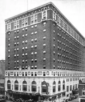 While primarily known by the name "Hotel Charlotte", it also operated under the names "Queen Charlotte Hotel", "White House Inn" and "White House Hotel". It closed on December 31, 1973.[4] It was designed by William Lee Stoddart and was a steel-frame building sheathed with sections of gray granite and buff-colored brick. It housed 250 guest rooms.[5]