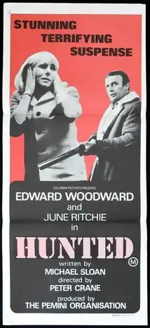 Hunted is a 1972 British two-hander dramatic short film directed by Peter Crane and starring Edward Woodward and June Ritchie.[1] The screenplay was by Michael Sloan, who co-produced the film with Crane for their independent company The Pemini Organisation.