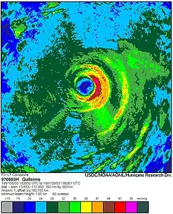 - ^ a b c d Paul D. Reasor; Matthew D. Eastin; John F. Gamache (June 30, 2008). "Rapidly Intensifying Hurricane Guillermo (1997). Part I: Low-Wavenumber Structure and Evolution". Monthly Weather Review. 137 (2). American Meteorological Society: 603–631. doi:10.1175/2008MWR2487.1.