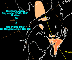 - ^ "Rainfall amounts from Hurricane Juan". Environment Canada. 2003. Archived from the original on September 8, 2012. Retrieved December 23, 2006.