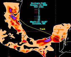 - ^ a b Stephanie Kriner (October 4, 2000). "After Swamping Central America, Keith Strengthening in the Gulf". ReliefWeb. DisasterRelief.org. Retrieved June 2, 2013.