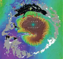 - ^ a b c d e Kenneth L. Tanaka, J. Alexis P. Rodriguez, James A. Skinner Jr., Mary C. Bourke, Corey M. Fortezzo, Kenneth E. Herkenhoff, Eric J. Kolb, Chris H. Okubo (28 February 2008). "North polar region of Mars: Advances in stratigraphy, structure, and erosional modification". Icarus. 196 (2): 318–358. Bibcode:2008Icar..196..318T. doi:10.1016/j.icarus.2008.01.021. Retrieved 25 August 2017.