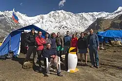 Iñaki Ochoa de Olza (May 29, 1967 in Pamplona, Navarre – May 23, 2008 on Annapurna, Nepal) was a Spanish climber. Ochoa de Olza took part in more than thirty separate climbing expeditions in the Himalayas over the course of his career, and was involved in more than 200 expeditions as a guide.[1] He climbed 12 of the world's 14 tallest mountains (repeating one of them, Cho Oyu)[2] without using oxygen.[3] Ochoa went on record as saying that he did not believe in using oxygen to climb mountains, claiming "if you use oxygen, you are not an alpinist; you are more of an astronaut or a scuba diver.".[1] He died of pulmonary edema in May 2008 while climbing Annapurna (which would have been his 13th eight thousander).