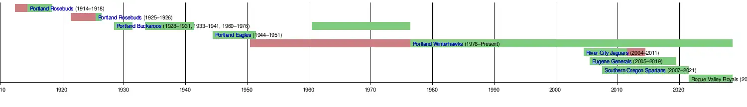 Southern Oregon SpartansEugene GeneralsRiver City JaguarsPortland WinterhawksPortland EaglesPortland BuckaroosPortland Rosebuds (ice hockey)Portland Rosebuds (ice hockey)
