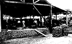 By May 1915, the price of copper had risen, probably due to wartime demand, and there was the prospect of the mine reopening.[42] In 1916, the old Queen Bee Copper Mine was reborn as the Mount Illewong Mine. The mine was dewatered, after around four years of inactivity. A new concentrator plant replaced the on-site smelting of the previous operations; the copper concentrate was shipped to a copper smelter and refinery at Port Kembla.[43][44][45] This revival of the mine—it employed only around twenty men in February 1917[46]—failed to last. Operations were "temporarily curtailed", in October 1917, with the reason being that Port Kembla already had too much ore.[47] Six men later worked the mine as tributers—supplying the C.S.A. mine's smelter at Elouera, north of Cobar township—but large scale mining there was over. Around March 1919, the equipment was stripped from the old Queen Bee Mine.[48]