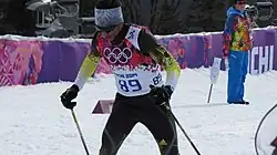 Iqbal was initially slated to compete as an Independent athlete at the games.[29] But after the reinstatement of the Indian Olympic Committee on 11 February 2014, he received clearance to compete under the Indian flag the day before the main event.[19] The main event was held on 14 February 2014 at the Laura Biathlon & Ski Complex and marked Iqbal's first and only participation in the Winter Olympic Games.[41] Iqbal completed the 15 km (9.3 mi) course in 55:12.5.[42][43] He finished the race in 85th position (out of 87 competitors who completed the race), nearly 17 minutes behind the winner Dario Cologna of Switzerland.[19][42][44]