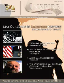 Inspire is an English-language online magazine published by the organization al-Qaeda in the Arabian Peninsula (AQAP). The magazine is one of the many ways AQAP uses the Internet to reach its audience. Numerous international and domestic extremists motivated by radical interpretations of Islam have been influenced by the magazine and, in some cases, used its bomb-making instructions in their attempts to carry out attacks.[2] The magazine is an important brand-building tool, not just of AQAP, but of all al-Qaeda branches, franchises and affiliates.[3]
