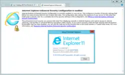 Internet Explorer 11 (IE11) is the eleventh and final version of the Internet Explorer web browser, by now retired. It was initially included in the release of Windows 8.1, Windows RT 8.1 and Windows Server 2012 R2 on October 17, 2013, and was later released for Windows 7 and Windows Server 2008 R2 on November 7, 2013. It is the successor to Internet Explorer 10, released the previous year, and was the original, default browser in Windows 8.1 and Windows Server 2012 R2. Internet Explorer 11 was also included in the release of Windows 10 on July 29, 2015, as well as in Windows Server 2016 and Windows Server 2019. On April 16, 2019, Internet Explorer 11 was made available to Windows Server 2012 and Windows Embedded 8 Standard as the final expansion of Internet Explorer 11 availability.[4][5] Internet Explorer 11, like its predecessor, is not available for Windows 8, Windows Vista, Windows Server 2008, and earlier versions of Windows and Windows Server.