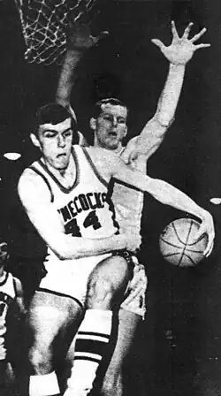 ![]() Thompson (number 44) is guarded by North Carolina Tar Heels center Rusty Clark on March 1, 1967. | |