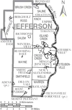 Jefferson County is a county located in the U.S. state of Ohio. As of the 2020 census, the population was 65,249.[2] Its county seat is Steubenville.[3] The county is named for Thomas Jefferson, who was vice president at the time of its creation.[4]
