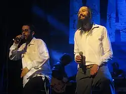 In Israel, a number of Orthodox rappers have become popular in both religious and secular circles. The rap rock band Shtar, formed at the Aish HaTorah yeshiva in Israel by Seattle rapper Ori Murray and British guitarist Brad Rubinstein, appeared on the reality singing competition HaKokhav HaBa performing Linkin Park's "In the End".[9] Rinat Gutman, the country's first religious female rapper, gained attention in 2015 for her song "Shirat Ha'asavim Hashotim", a darkly humorous song addressing the sexual harassment committed by a number of Orthodox rabbis and other authority figures.[10][11] Around the same time, America saw the arrival of Ephryme's alternative hip hop collective Darshan and the Ladino-language group Los Serenos Sefarad.