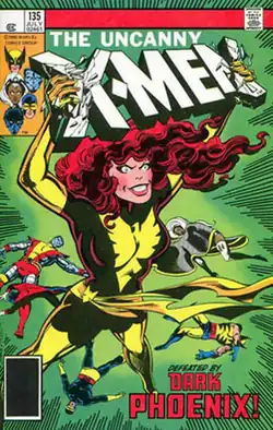 Byrne joined Claremont beginning with X-Men #108 (Dec. 1977), which was later renamed The Uncanny X-Men with issue #114.[26] Their work together, along with inker Terry Austin, on such classic story arcs as "Proteus", "Dark Phoenix Saga", and "Days of Future Past" would make them both fan favorites.[27] Byrne insisted that the title keep its Canadian character, Wolverine, and contributed a series of story elements to justify Wolverine's presence which eventually made the character among the most popular in Marvel's publishing history. With issue #114, Byrne began co-plotting the series as well as penciling. Claremont recounted that "at that point in time John and I were, in a very real sense, true collaborators on the book. It was with very few exceptions, difficult, for me, anyway, to tell in the actual gestation of the book where one of us left off and the other began – because it involved one of us coming up with an idea and bouncing it off the other ..."[28] The "Dark Phoenix Saga" in 1980 is one of the most notable stories in the title's history.[29][30] Comics writers and historians Roy Thomas and Peter Sanderson observed that "'The Dark Phoenix Saga' is to Claremont and Byrne what the 'Galactus Trilogy' is to Stan Lee and Jack Kirby. It is a landmark in Marvel history, showcasing its creators' work at the height of their abilities."[31] Byrne has repeatedly compared his working relationship with Claremont to Gilbert and Sullivan, and has said that they were "almost constantly at war over who the characters were."[32] Byrne created the characters Alpha Flight,[33] Proteus,[34] and Kitty Pryde/Shadowcat[35][36] during his run on The X-Men. A new Brotherhood of Evil Mutants, led by Mystique, was introduced in the "Days of Future Past" storyline (#141–142, Jan.-Feb. 1981) in which a time-travelling Kitty Pryde tried to avert a dystopian future caused by the Brotherhood assassinating Presidential candidate Senator Robert Kelly.[37] Byrne plotted the story because he wanted to depict the Sentinels as a genuine threat to the existence of the mutant race.[38] Byrne left The X-Men with #143 (March 1981). During his tenure on the series, The X-Men was promoted from a bimonthly to a monthly publication schedule as sales steadily increased—a trend that continued long after Byrne left.[39]
