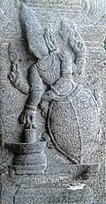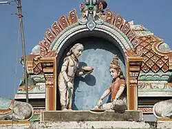 A stucco image indicating the legend of Shiva feeding Sundarar