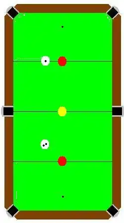 - Pocketing the yellow cross-side plus caroms with both reds = 21 points