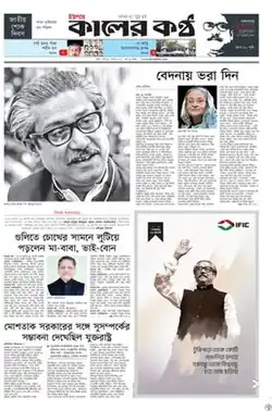 ![]() 15 August 2023 front page of Kaler Kantho | |