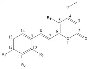 - ^ Ligresti A, Villano R, Allarà M, et al. (2012). "Kavalactones and the endocannabinoid system: the plant-derived yangonin is a novel CB₁ receptor ligand". Pharmacol. Res. 66 (2): 163–9. doi:10.1016/j.phrs.2012.04.003. PMID 22525682.
