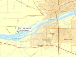 Key Cave National Wildlife Refuge is a 1,060 acre (4.3 km2) National Wildlife Refuge located in northwestern Alabama, along the Tennessee River downstream from Florence, Alabama. Additional purchases are under negotiation which will increase the size of the refuge to 1,800 acres (7.3 km2).