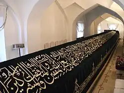 Khoja Doniyor mausoleum is an architectural monument in Samarkand (built at the beginning of the 20th century). It is located in the east side of the Afrosiyab fortress along the Siyob stream.[1][2] It was built on the grave of Wali Khoja Doniyor. It consists of a rectangular room with a gable and five domes (the length is about 15 m). The pediment (on the north side) and the domed, cup-shaped patterns on both sides of it were decorated with ganch carving, and the sides are decorated with arches. There is an oblong hut inside the mausoleum. The spring near the mausoleum is considered a blessing among the people. According to Abu Tahirkhoja's work "Samaria", Khoja Doniyor (Doniyol) was one of the companions of Kusam Ibn Abbas.