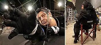 Jackson saw King Kong as opportunity for technical innovations in motion capture, commissioning Christian Rivers of Weta Digital to supervise all aspects of Kong's performance.[31] Jackson decided early on that he did not want Kong to behave like a human, and so he and his team studied hours of gorilla footage.[32] Serkis was cast in the title role in April 2003[8] and prepared himself by working with gorillas at the London Zoo. He then traveled to Rwanda, observing the actions and behaviors of gorillas in the wild.[9] Rivers explained that the detailed facial performance capture with Serkis was accomplished because of the similarities between human and gorilla faces. "Gorillas have such a similar looking set of eyes and brows, you can look at those expressions and transpose your own interpretation onto them."[31] Photos of silverback gorillas were also superimposed on Kong's image in the early stages of animation.[33] Serkis had to go through two hours of motion capture makeup every day, having 135 small markers attached to different spots on his face.[31] Following principal photography, Serkis had to spend an additional two months on a motion capture stage, miming Kong's movements for the film's digital animators.[34]
