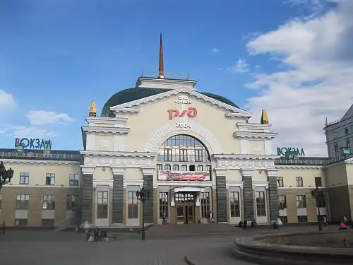 Krasnoyarsk–Passazhirsky (Russian: Красноярск–Пассажирский, lit. Krasnoyarsk-Passenger) is the main railway station of Krasnoyarsk in Russia. It is located 4,098 kilometres (2,546 mi) from Moscow.[3]