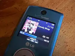 Here the LG Chocolate3 is shown playing music using the external screen.