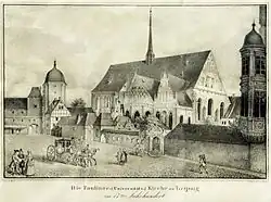University Church, Leipzig, where the cantata was first performed (17th-century lithograph)