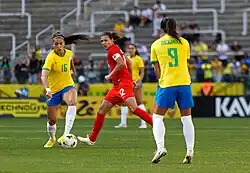 In 2011, Canadian players and the team's manager Carolina Morace raised complaints with Canada Soccer over compensation ahead of the 2011 FIFA Women's World Cup. Players sought parity with the Canadian men's national team in the calculations used to determine players' salaries, though not equal pay, and proposed raising the issue for arbitration with the Sport Dispute Resolution Centre of Canada.[51] Players stepped away from club play to focus entirely on World Cup preparation, and national team defender Carmelina Moscato noted that players would often negotiate pay with Canada Soccer during competitive tournaments. Morace threatened to resign after the 2011 World Cup over her own dispute with the association.[52]