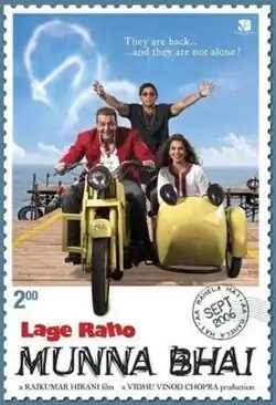 Lage Raho Munna Bhai (pronounced [ləˈɡeː rəˈɦoː mʊnːaːˈbʱaːi] ⓘ; translation: Keep Going, Munna Bhai) is a 2006 Indian Hindi-language satirical comedy drama film written, edited and directed by Rajkumar Hirani, who also co-wrote the screenplay with Abhijat Joshi, and produced by Vidhu Vinod Chopra under the banner Vinod Chopra Films. A sequel to Munna Bhai M.B.B.S. (2003), the film is the second installment of the Munna Bhai series. Sanjay Dutt and Arshad Warsi reprised their roles as the titular Munna Bhai and Circuit, respectively. New additions to the cast include Vidya Balan, Dilip Prabhavalkar and Dia Mirza, while several actors from the original, notably Jimmy Sheirgill and Boman Irani, appear in new roles.
