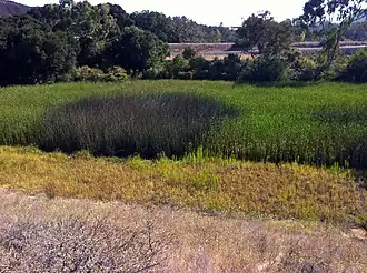 Along the Crystal Springs Trail, just southwest of Cañada Road and its I-280 overpass, is the Homestead Pond. This 12 acre pond and marsh is host to Western pond turtles (Actinemys marmorata) and is adjacent to the south fork of Laguna Creek.[19] The pond is the site of a restoration effort by the San Francisco Public Utilities Commission which will include removal of non-native eucalyptus trees and planting of native oaks and grasses.[20]