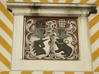 - ^ The building, in Weser Renaissance style, was completed in 1588