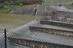 In September 2007, the Santa Clara Valley Water District began its "Lenihan Dam Outlet Project" at Lexington Reservoir. This project replaced the old 48-inch (1,200 mm) outlet pipe that ran through the base of the dam, from the reservoir to Los Gatos Creek. The old pipe was replaced with a 54-inch (1,400 mm)-diameter pipe, new valves, outlet structures, and a control building.[3] The increase in size was made to allow the reservoir to drain quickly enough to prevent dam collapse during emergencies, such as after a major earthquake that could cause cracks in the dam, or during a series of heavy winter storms. A collapse would pose flooding risks to Los Gatos and Campbell.[3]