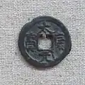 Liao dynasty coins (like some contemporary Song dynasty coins) can be read top-right-bottom-left (clockwise), but unlike the Song's coinage never appeared top-bottom-right-left. Liao dynasty era coins have appeared in both Chinese and Khitan scripts.[3][4] The coins in Khitan script do tend to have different character orders,[5] Though these coins weren't meant for circulation.[6]